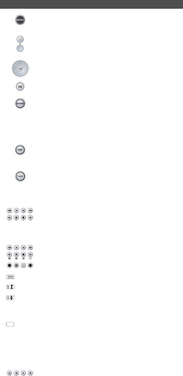 TEXT OFF: Switches the device (TV and/or SAT) back to regular viewing mode.
