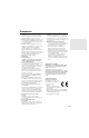 Caractéristiques Accessoires fournis ❑ 50 Watts/canal sous 8 Ω (FTC) (pour le modèle nord-américain) Vérifiez si vous avez bien reçu les éléments suivants: ❑ 90 Watts/canal sous 6 Ω (IEC) (pour le modèle européen) ❑ Technologie WRAT (‘Wide Range Amplifier Technology’) ❑ Amplificateur avec étage de sortie à composants discrets Télécommande et deux piles (AAA/R03) ❑ Transformateur EI massif ❑ Excitation par courant élevé de basse impédance Antenne FM intérieure ❑ Mode Direct ❑ 5 entrées et 1 sortie au