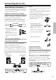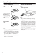Remote Controller—Continued Inserting the Batteries Detach the battery cover. Using the Remote Controller Point the remote controller toward the remote control sensor. Remote control sensor Insert the two R6 (size AA) batteries. Be sure to match the + and – ends of the batteries to the diagram inside the battery compartment. Attach the battery cover. Notes: • Do not mix new batteries with old batteries. Do not mix different kinds of batteries.