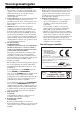 Försiktighetsåtgärder 1. Angående upphovsrätt—Så länge det inte endast är för privat bruk är det förbjudet att kopiera upphovsrättsskyddat material utan upphovsrättsinnehavarens tillstånd. 2. Nätströmssäkring—Nätströmssäkringen i apparaten ska inte bytas ut av användaren. Kontakta en Onkyohandlare, om strömmen till apparaten inte kan slås på. 3. Vård—Torka då och då av utsidan på apparaten med en mjuk trasa.
