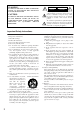 Precautions 1. Recording Copyright—Unless it’s for personal use only, recording copyrighted material is illegal without the permission of the copyright holder. 2. AC Fuse—The AC fuse inside the unit is not userserviceable. If you cannot turn on the unit, contact your Onkyo dealer. 3. Care—Occasionally you should dust the unit all over with a soft cloth. For stubborn stains, use a soft cloth dampened with a weak solution of mild detergent and water. Dry the unit immediately afterwards with a clean cloth.
