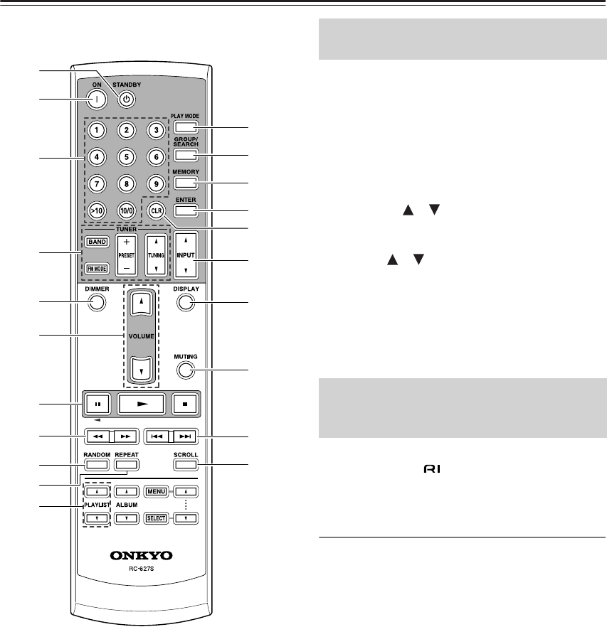 Fjärrkontrollens manöverknappar för