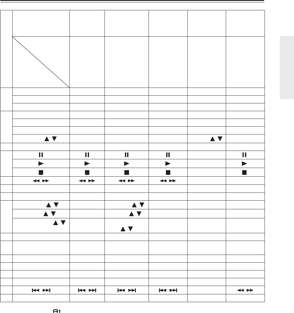 • På tabellen ovan anger tomma celler att ingen funktion blir tillgänglig om man trycker på knappen