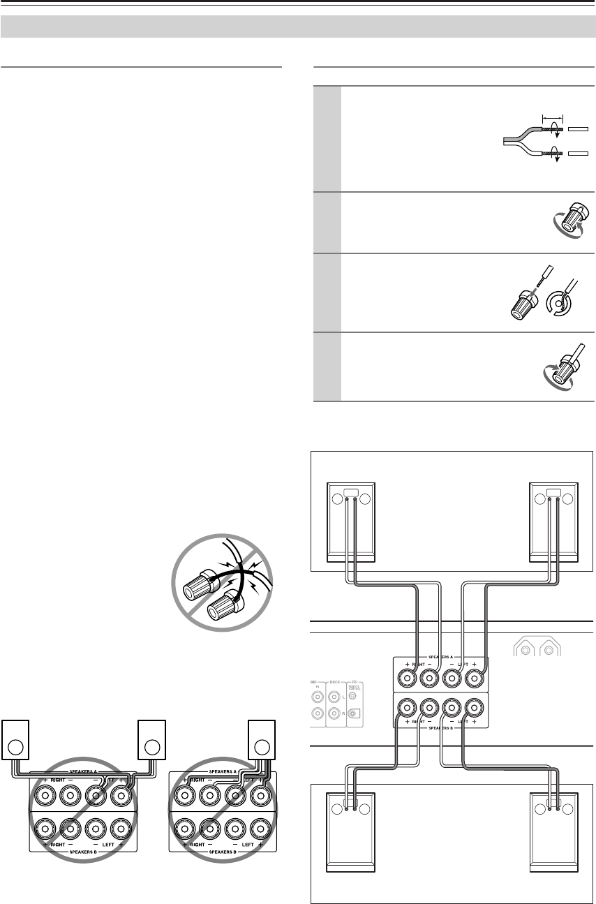 • Om du ansluter båda högtalarsatser till utgångarna A