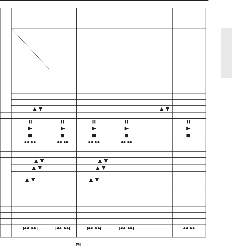 • In der Tabelle oben weisen leere Zellen darauf hin, dass durch Drücken der Taste keine Funktion verfügbar ist.