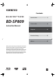 Contents BLU-RAY DISC™ PLAYER Introduction ................................. 5 BD-SP809 Connections ............................... 14 Instruction Manual Playback ..................................... 22 Function Setup .......................... 37 Others ........................................ 47 Thank you for purchasing an Onkyo BLU-RAY DISC™ PLAYER. Please read this manual thoroughly before making connections and plugging in the unit.