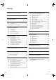 Categorie HDMI Menu's / Opties HDMI-uitgangHO 3D-uitgang3D Videoresolutie HDMI keuze HDMI RGB instelling HDMI audioformaat Deep Colour Audio-uitgang HDMI CEC Weergeven Speler MenuPM Audio Ondertitel 38 E5XB0_2ED_NL_Book.indb 38 Hoofd Duaal (Hoofd en Sub) AV-Splitsing (Hoofd:V, Sub:A) Auto 3D 2D Auto 480i/576i 480p/576p 720p 1080i 1080p 1080p/24 Directe Weergave YCbCr RGB Normaal Versterkt Max.
