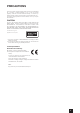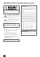 IMPORTANT SAFETY INSTRUCTIONS (continued) Model for USA CAUTION: TO REDUCE THE RISK OF ELECTRIC SHOCK, DO NOT REMOVE COVER (OR BACK). NO USER-SERVICEABLE PARTS INSIDE. REFER SERVICING TO QUALIFIED SERVICE PERSONNEL The lightning flash with arrowhead in an equilateral triangle is intended to alert the user to the presence of uninsulated “dangerous voltage” within the product’s enclosure that could be of sufficient magnitude to constitute a risk of electric shock to persons.