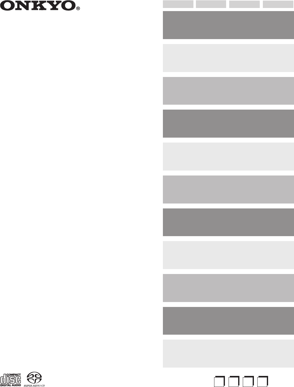 Egenskaper - Exklusiv Onkyo VLSC-teknologi - Höggradig Wolfson 192 kHz / 24-Bit D/Aomvandlare (WM8742) - Kristalloscillator med termisk reglering/ jitterborttagningskrets för att stabilisera klockfrekvensen - Super Audio CD / Audio CD / CD-R / CD-RW / MP3 CD / WMA CD-uppspelningskapacitet - Digital utgång på/av - 19 mm (3/4 tums)-avstånds audioterminaler för höggradiga kablar - 2 digitala utgångar (optisk/koaxial) - 4-läges displaydimmer (Standard -> Dimmer -> Dim -> av) - Digital filterkontroll (CD:5 läge
