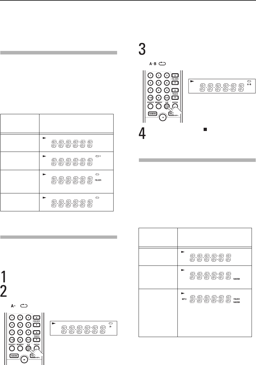Wiedergabemethoden: Wiederholen, A-B Wiederholung, Zufallswiedergabe und Speicher.