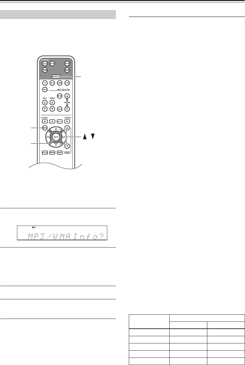 [DISPLAY] toets tijdens het MP3/WMA-afspelen in