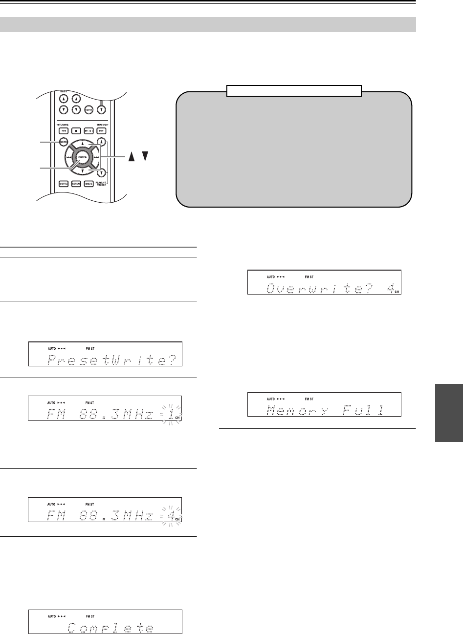 Met de voorkeurzenderschrijffunctie kunt u handmatig de gewenste FM- en AM-radiozenders vastleggen. Nadat de