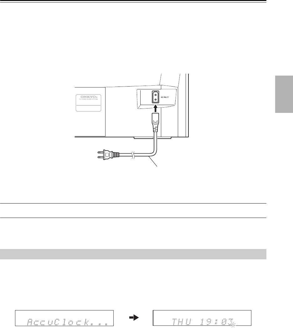 FM-antenn behöver vara ansluten. Se till att ansluta en FM-antenn, innan du ansluter strömkabeln (se sida 14).