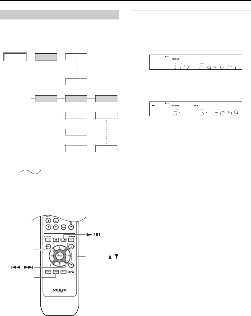 På en MP3/WMA kan filer ordnas hierarkiskt, med map-