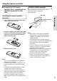 Using the remote controller ■ Using the RC-413C remote controller that is supplied with the CDR-205X to operate the CDR205X Using the remote controller When operating the remote controller, point it toward the remote control sensor of the CDR-205X. CDR-205X Remote control sensor 1 Push the battery cover in the direction of the arrows shown and remove it.