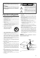 “WARNING” “TO REDUCE THE RISK OF FIRE OR ELECTRIC SHOCK, DO NOT EXPOSE THIS APPLIANCE TO RAIN OR MOISTURE.” CAUTION: WARNING AVIS RISK OF ELECTRIC SHOCK DO NOT OPEN RISQUE DE CHOC ELECTRIQUE NE PAS OUVRIR ● “TO REDUCE THE RISK OF ELECTRIC SHOCK, DO NOT REMOVE COVER (OR BACK). NO USER-SERVICEABLE PARTS INSIDE. REFER SERVICING TO QUALIFIED SERVICE PERSONNEL.” ● Important safeguards 1. Read Instructions – All the safety and operating instructions should 2.