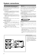 System connections Connecting the speaker cables 1 2 1. Open the lever. 2. Twist wire ends very tight, and insert the wire. 3 15 mm 3. Close the lever. Connecting speakers R NO L SPEAKERS CAUTION : SPEAKER IMPEDANCE 4OHMS MIN. / SPEAKERS • SPEAKER IMPEDANCE: 4 OHMS MIN/SPEAKERS Never allow the bare wires in the speaker cables to touch each other. Do not connect a speaker with a low impedance as this will cause trouble.