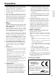 Precautions 1. Recording Copyright—Unless it’s for personal use only, recording copyrighted material is illegal without the permission of the copyright holder. 2. AC Fuse—The AC fuse inside the unit is not userserviceable. If you cannot turn on the unit, contact your Onkyo dealer. 3. Care—Occasionally you should dust the unit all over with a soft cloth. For stubborn stains, use a soft cloth dampened with a weak solution of mild detergent and water. Dry the unit immediately afterwards with a clean cloth.