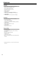 Contents Basic Operations Getting Started Important Safety Instructions .............................. 2 Precautions ........................................................ 3 Supplied Accessories ......................................... 4 Before Using the CD Receiver ........................... 5 Installing the Batteries .................................... 5 Using the Remote Controller .......................... 5 Features ............................................................. 6 Contents .........
