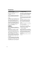 Troubleshooting Symptom Possible cause The received signal is too weak? FM reception is hindered by hiss and the tuning and stereo indicators are flashing. The radio presets no longer work. Stereo FM transmissions travel only half the distance of regular transmissions? Remedy Install an outdoor FM antenna. See page 24. Try changing the position and direction of the outdoor antenna. Set the FM mode to Mono. See page 46.