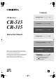 Contents CD Receiver CR-515 CR-315 Getting Started .......................... 2 Connections ............................ 16 Basic Operation ...................... 27 Instruction Manual Playing a Disc.......................... 30 Listening to the Radio ........... 39 Clock and Timer ...................... 47 Thank you for purchasing an Onkyo CD Receiver. Please read this manual thoroughly before making any connections and plugging it in.