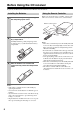 Before Using the CD receiver In general, the illustrations in this Instruction Manual show the CR-325. Installing the Batteries 1 Detach the battery cover by pressing the tab and pulling up the cover. Using the Remote Controller When you operate the remote controller, point it at the CD receiver’s remote control sensor, as shown below. Remote control sensor 5 x. pro ) p . A ft (1 6 m CD receiver 2 3 Insert two batteries (R6/AA) into the battery compartment.