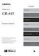 Contents CD Receiver CR-445 Getting Started ................................... 2 Connections ..................................... 13 Basic Operations ............................ 18 Instruction Manual Disc Playback ................................. 20 iPod / iPhone Playback .................... 27 Listening to the Radio .................... 30 Thank you for purchasing an Onkyo CD receiver. Please read this manual thoroughly before making any connections and plugging it in.