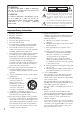 Precautions—Continued • Do not use this unit when there’s the possibility of moisture condensation occurring. Doing so may damage your discs and certain parts inside this unit. If condensation does occur, unplug the power cord and leave the unit for two to three hours in the room temperature. This unit contains a semiconductor laser system and is classified as a “CLASS 1 LASER PRODUCT”. So, to use this model properly, read this Instruction Manual carefully.