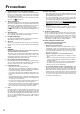 Other Troubleshooting Check the following guide for the possible cause of a problem before contacting service. Refer also to the respective instruction manuals of the connected components and TV. Symptoms Causes Remedies Pages The DVD Receiver doesn’t switch on. • The power cord (mains lead) is disconnected. • The main power is set to OFF. • There is external noise interfering with the computer circuits of the DVD Receiver. • Check the connection of the power cord (mains lead).