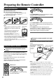 Preparing the Remote Controller MODE Inserting the Batteries DVD 1 Detach the battery cover. 2 Insert the two size AA/R6/UM3 batteries. Be sure to match the + and – ends of the batteries with the diagram inside the battery compartment. 3 Attach the battery cover. 1 TV Press MODE AUDIO first before operating the speaker setting and sound related operations.
