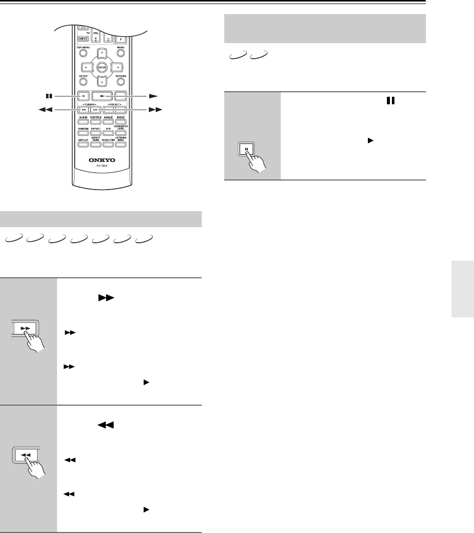 • För DVD-ljudskivor kan snabbspelning framåt eller
