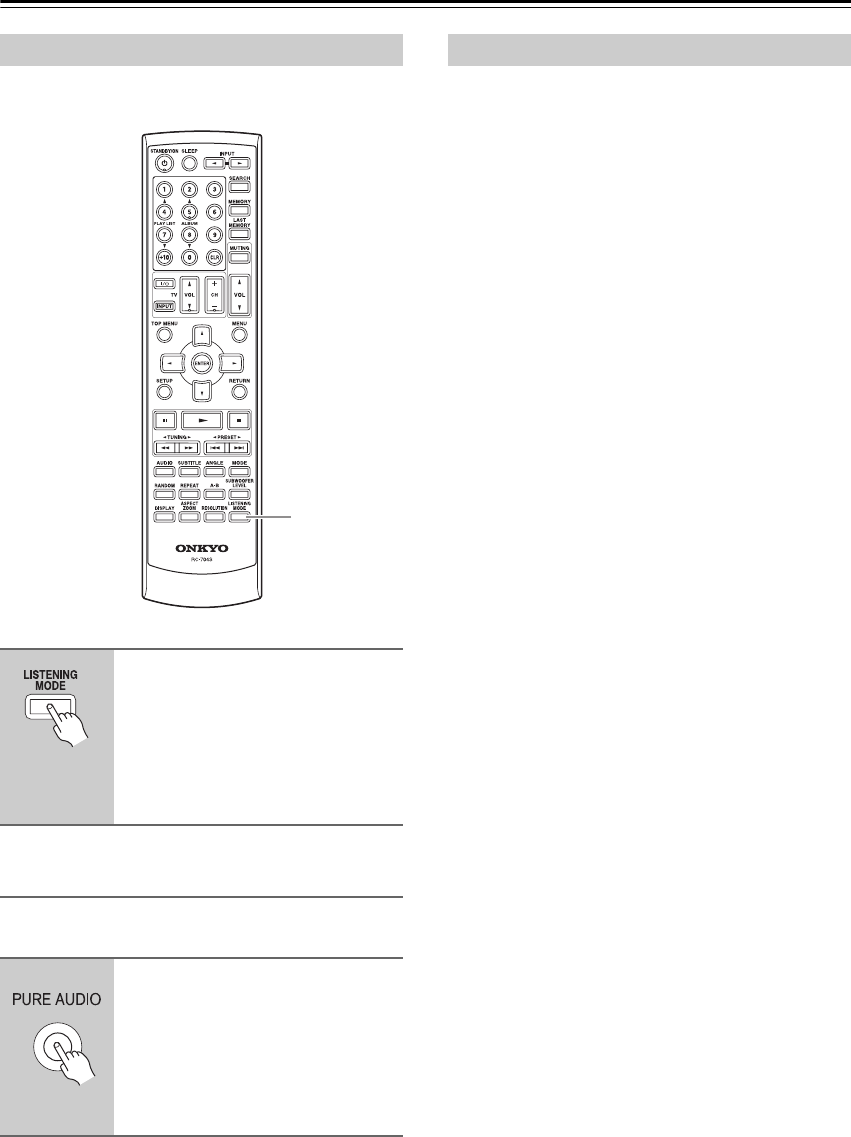 Lyssningsläget Pure Audio kan även väljas med [PURE