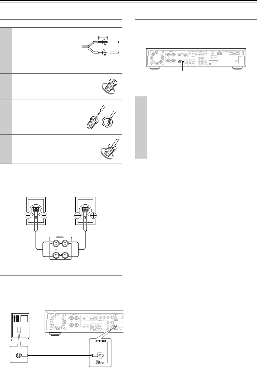 Anslut en lämplig kabel till utgången PRE OUT SUB-
