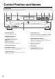 Control Position and Names Front Panel For operational instructions, see the page indicated in brackets [ ]. 1 2 3 4 5 6 7 8 1 POWER button [17] Turns on the main power supply. 2 STANDBY indicator [17] Lights in the standby mode. 3 STANDBY/ON button [17] Toggle for standby on and off. 4 CD PLAY button [26] Press to use the DVD Changer as CD player. 5 Front panel display [12] 6 DISC SKIP button [18] Press to select a disc.