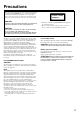 Precautions This unit contains a semiconductor laser system and is classified as a “CLASS 1 LASER PRODUCT”. So, to use this model properly, read this Instruction Manual carefully. In case of any trouble, please contact the store where you purchased the unit. To prevent being exposed to the laser beam, do not try to open the enclosure. “CLASS 1 LASER PRODUCT ” CAUTION: VISIBLE LASER RADIATION WHEN OPEN AND INTERLOCK FAILED OR DEFEATED. DO NOT STARE INTO BEAM. CAUTION: 1.