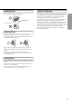 Handling Discs Notes on Copyright • Do not touch the playback side of the disc. Playback side • Do not attach paper or tape to discs. It is forbidden by law to copy, broadcast, show, broadcast on cable, play in public, and rent copyrighted material without permission. The video recorded on DVD-Video is copy protected, and any recordings made from these discs will be distorted. This product incorporates copyright protection technology that is protected by method claims of certain U.S.