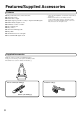 Features/Supplied Accessories Features ● ● ● ● ● ● ● ● ● ● ● ● Plays DVD-Video Discs, Video CDs, CDs 10-bit Video DAC Parallel Video Output Digital Outputs pass DTS®*1, Dolby®*2 Digital and PCM Signals Built-In Dolby® Digital decoder Full-function remote controller Direct Digital path Plays 5 Discs CD-R and CD-RW playable Plays MP3 CD PLAY function for audiophile Pass 96 kHz PCM digital stream *1 “DTS” and “DTS Digital Out” are trademarks of Digital Theater Systems, Inc.