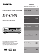 Contents Before Using Your DVD Changer DVD / VIDEO CD / CD CHANGER Getting Started 2 6 DV-C601 Connections 10 Basic Playback 14 Advanced Playback 21 Function Setup 32 Others 40 Instruction Manual NEXT SELECTION OPEN / CLOSE PAUSE STOP PLAY POWER REPEAT C D PLAY STANDBY / ON ON DIMMER DISPLAY DISC SKIP DISC 1 DISC 2 DISC 3 DISC 4 DISC 5 DISC 6 OFF DVD / VIDEO CD / CD CHANGER Thank you for purchasing the Onkyo DVD Changer.
