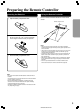 Preparing the Remote Controller Inserting the Batteries 1 Open the battery compartment cover. Using the Remote Controller Point the remote controller toward the remote control sensor. Remote control sensor ENTER m 30˚ Ab ou t 5 30˚ 2 Insert the two R6 (size AA) batteries. Be sure to match the + and – ends of the batteries with the diagram inside the battery compartment. Notes 3 Close the battery compartment cover.