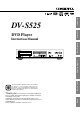 Introduction Connections DV-S525 DVD Player OPEN /CLOSE DIMMER STANDBY/ON PAUSE Basic Playback Instruction Manual PLAY STOP PHONES PHONES LEVEL POWER ON OFF MIN DVD / VIDEO CD / CD PLAYER MAX DV-S 525 THIS DVD PLAYER IS MANUFACTURED FOR PLAYBACK OF REGION 1 (USA, CANADA) ENCODED DVD SOFTWARE. USE OF SOFTWARE NOT INTENDED FOR REGION 1 PLAYBACK MAY RESULT IN UNDESIRABLE PLAYER PERFORMANCE.