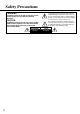 Safety Precautions “WARNING” The lightning flash with arrowhead symbol, within an equilateral triangle, is intended to alert the user to the presence of uninsulated “dangerous voltage” within the product’s enclosure that may be of sufficient magnitude to constitute a risk of electric shock to persons. “TO REDUCE THE RISK OF FIRE OR ELECTRIC SHOCK, DO NOT EXPOSE THIS APPLIANCE TO RAIN OR MOISTURE.