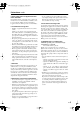 Fiche technique Système TV Modèles nord-américain et coréen: NTSC Autres modèles: PAL/AUTO Sortie vidéo composite/Impédance Sortie S-vidéo/Impédance Sortie vidéo composant/Impédance Prise AV (uniquement sur le modèle pour l’Europe) DVD audio Réponse en fréquence Signal audio linéaire DVD CD audio 1,0V (p–p), 75Ω, synchro négative, RCA/phono Y: 1,0V (p–p), 75Ω, synchro négative, mini DIN à 4 broches C: 0,286V (p–p), 75Ω Y: 1,0 V(p-p)/75 Ω PB/PR: 0,7 V(p-p)/75 Ω RCA/phono 1,0V(p-p)/75Ω, péritel 4 Hz–88