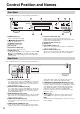 Control Position and Names Front Panel For operational instructions, see the page indicated in brackets [ ]. 1 POWER button [17] 7 Play/Pause £/8 button [18] Turns on the main power supply. 2 STANDBY/ON button [17] Toggle for standby and on. 3 STANDBY indicator [17] Lights in the standby mode. 4 Disc tray [18] 5 Open/Close 0 button [18] Press to open or close the disc tray. 6 Stop 7 button [18] Stops playing a disc.