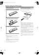 DV-SP406_En.book Page 10 Friday, May 9, 2008 12:00 PM Before Using the DVD player Installing the Batteries 1 Open the battery compartment, as shown. Using the Remote Controller To use the remote controller, point it at the DVD player’s remote control sensor, as shown below. Remote control sensor DVD player ) 30˚ 2 3 Insert the two supplied batteries (AAA/ R03) in accordance with the polarity diagram inside the battery compartment. Close the battery compartment.