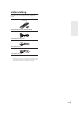 DV-SP406_DeNlSv.book Page 9 Friday, May 9, 2008 12:09 PM Afspeelbare schijftypes—Vervolg Behandeling van de discs Auteursrechten • Raak nooit de onderkant van een disc aan. Houd de discs altijd bij de rand vast, zoals afgebeeld. Het is verboden bij de wet om materiaal met auteursrecht zonder toestemming te kopiëren, tonen, of uit te zenden via kabel, af te spelen in het openbaar of te verhuren. Onderkant • Plak nooit plakband of stickers op de discs.