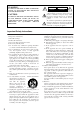 Precautions—Continued 5. Never Touch this Unit with Wet Hands 9. To Obtain a Clear Picture Never handle this unit or its power cord while your hands are wet or damp. If water or any other liquid gets inside this unit, have it checked by your Onkyo dealer. This unit is a high-tech, precision device. If the lens on the optical pickup, or the disc drive mechanism becomes dirty or worn, the picture quality may be affected.