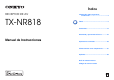 Índice RECEPTOR DE AV TX-NR818 Información sobre seguridad e introducción..............................................2 Índice ...............................................................5 Conexiones ...................................................12 Encendido y operaciones básicas..............22 Manual de Instrucciones Operaciones avanzadas ..............................50 Cómo controlar otros componentes ..........81 Apéndice .......................................................