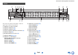 Información sobre seguridad e introducción Pantalla s a b cd e f j k l Para obtener una información detallada, consulte las páginas que se indican entre paréntesis. m b Indicador Z2 (Zona 2) (78) i Indicadores de entrada (101) Indicador HDMI (74) Indicador DIGITAL Indicador ANALOG c Indicador Z3 (Zona 3) (78) j Indicador Bi AMP d Modo de audición e indicadores de formato (39) k Indicador Audyssey (36, 66) Indicador Dynamic EQ (66) a Indicadores de altavoces/canales e Indicador M.