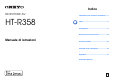 Indice RICEVITORE AV HT-R358 Informazioni sulla sicurezza e introduzione ..... 2 Indice ...............................................................5 Collegamenti.................................................11 Accensione e funzioni di base ....................18 Manuale di istruzioni Funzioni avanzate ........................................32 Controllo di altri componenti ......................44 Appendice .....................................................