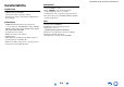 Appendice ■ HDMI Caratteristiche tecniche Sezione video Sezione amplificatori Sensibilità d'ingresso/Livello e impedenza di uscita 1 Vp-p/75 Ω (Apparecchio Y) 0,7 Vp-p/75 Ω (Apparecchio PB/CB, PR/CR) 1 Vp-p/75 Ω (Composito) Risposta video apparecchio in frequenza 5 Hz - 100 MHz/+0 dB, -3 dB Potenza nominale in uscita Tutti i canali: 6 canali × 100 W a 6 ohm, 1 kHz, 1 canale pilotato da 1% (IEC) Potenza dinamica* * IEC60268-Potenza uscita massima breve periodo 160 W (3 Ω, anteriore) 125 W (4 Ω, anterior